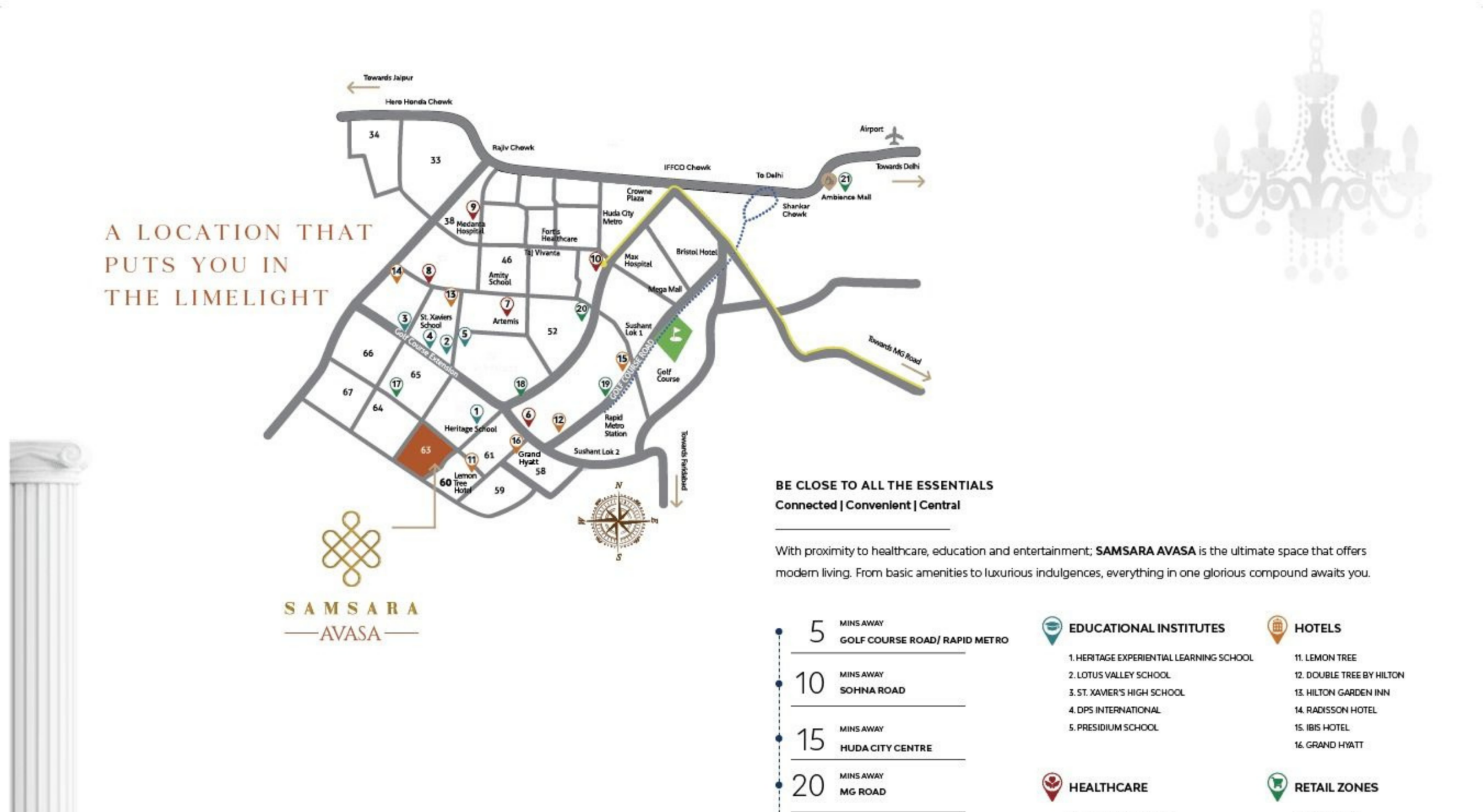 Adani Samsara Avasa is situated in Sector 63, Gurugram and features good access to Golf Course Extension Road, Sohna Road and important corporate hubs in Gurgaon and Delhi NCR.