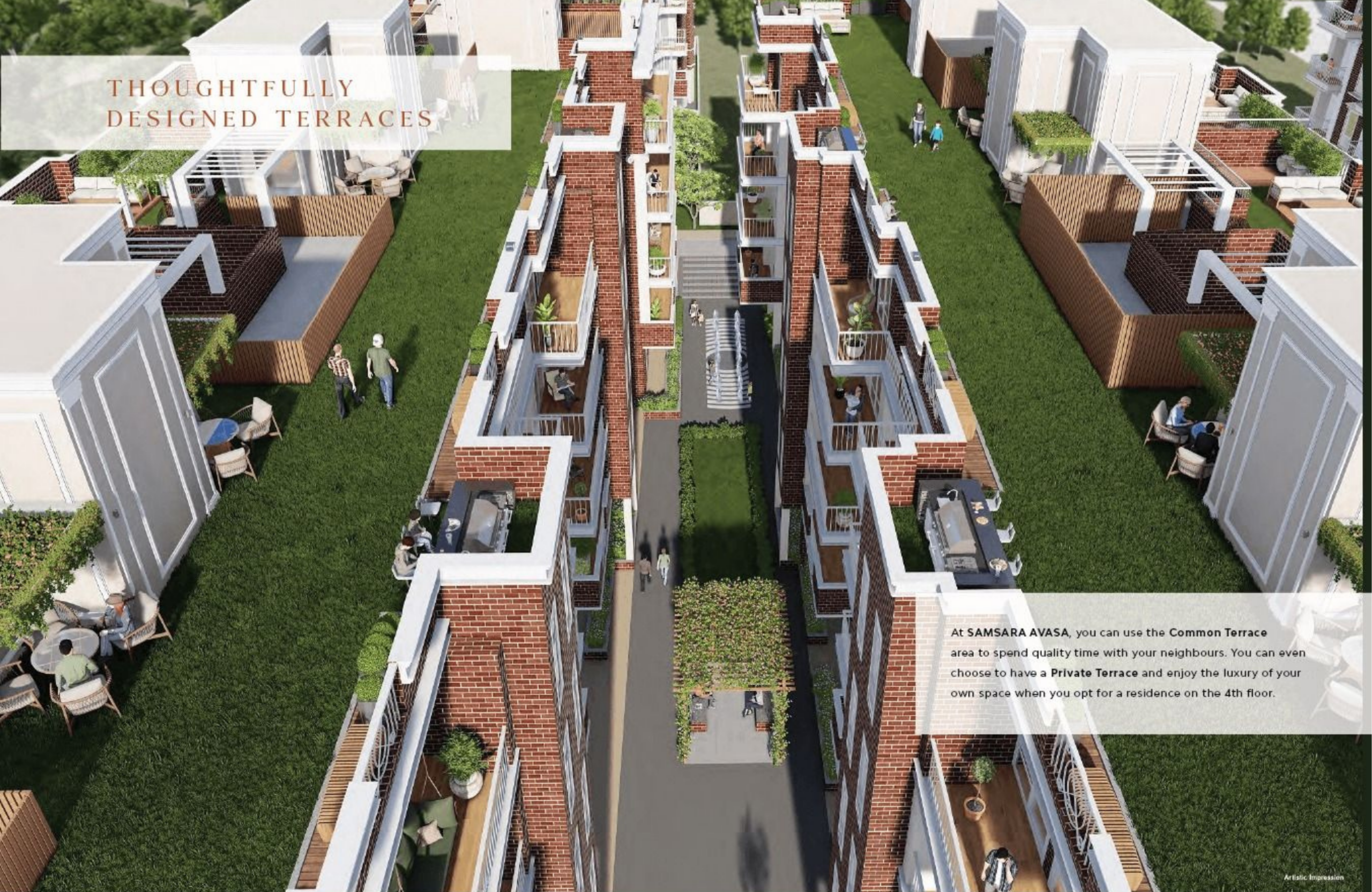 Adani Samsara Avasa offers large 4 BHK independent floors ranging from 2000 sq ft to 2700 sq ft for comfortable and sophisticated family living.