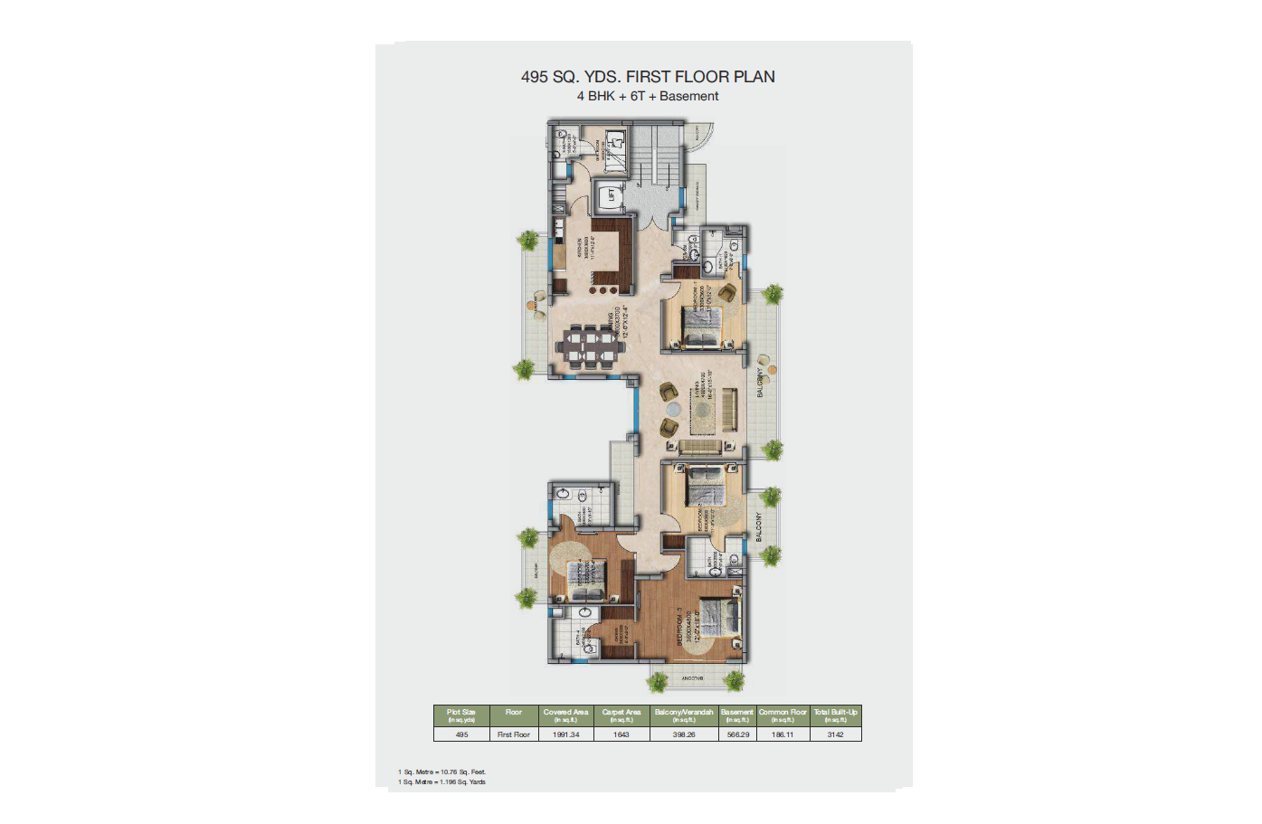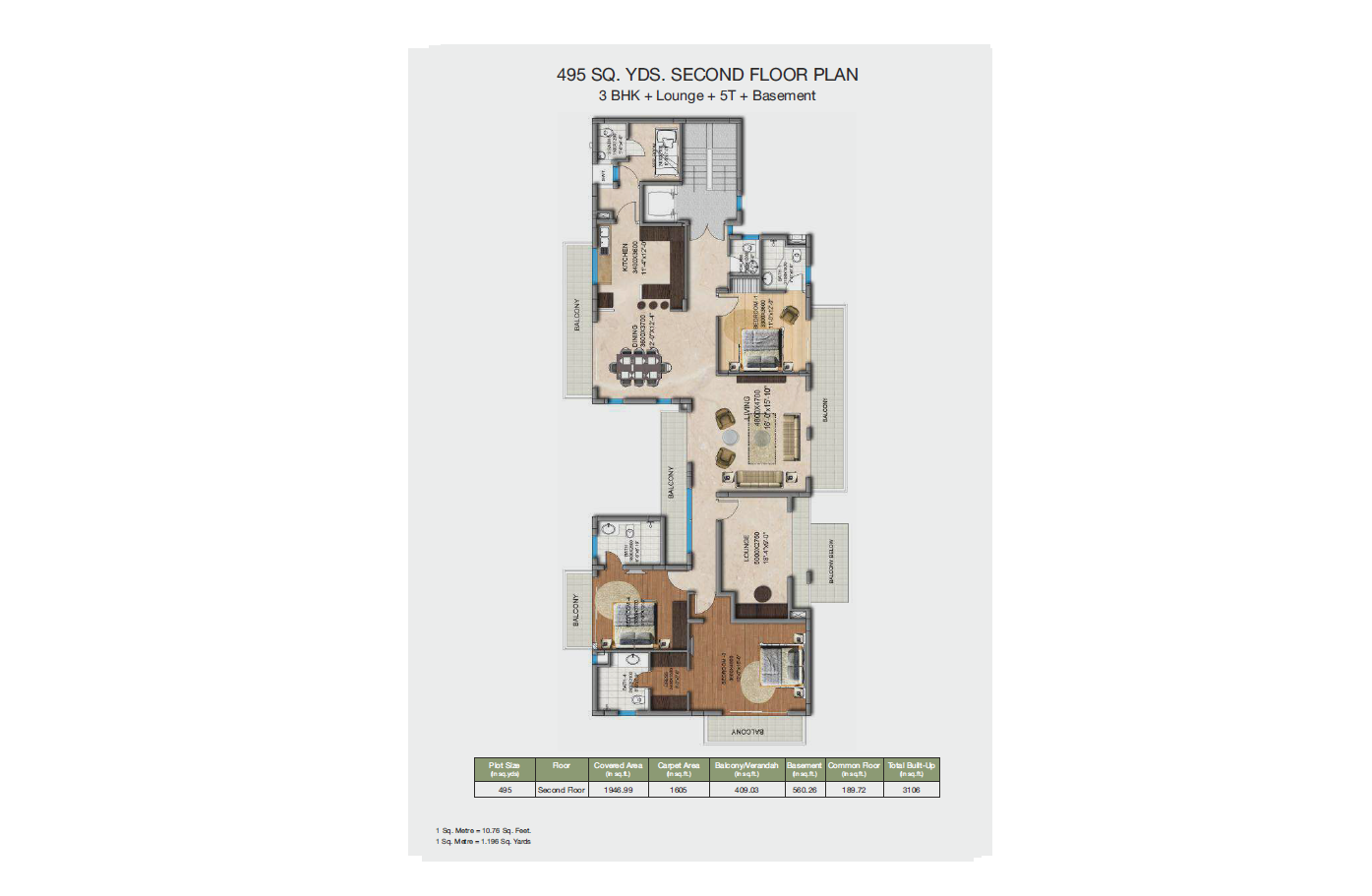 The property has a range of alternatives, including 3 BHK and 4 BHK houses, with sizes from 1,700 to 5,800 square feet. The independent floors follow a low-rise Stilt + 2 and +4 construction, which allows for privacy and community living.
