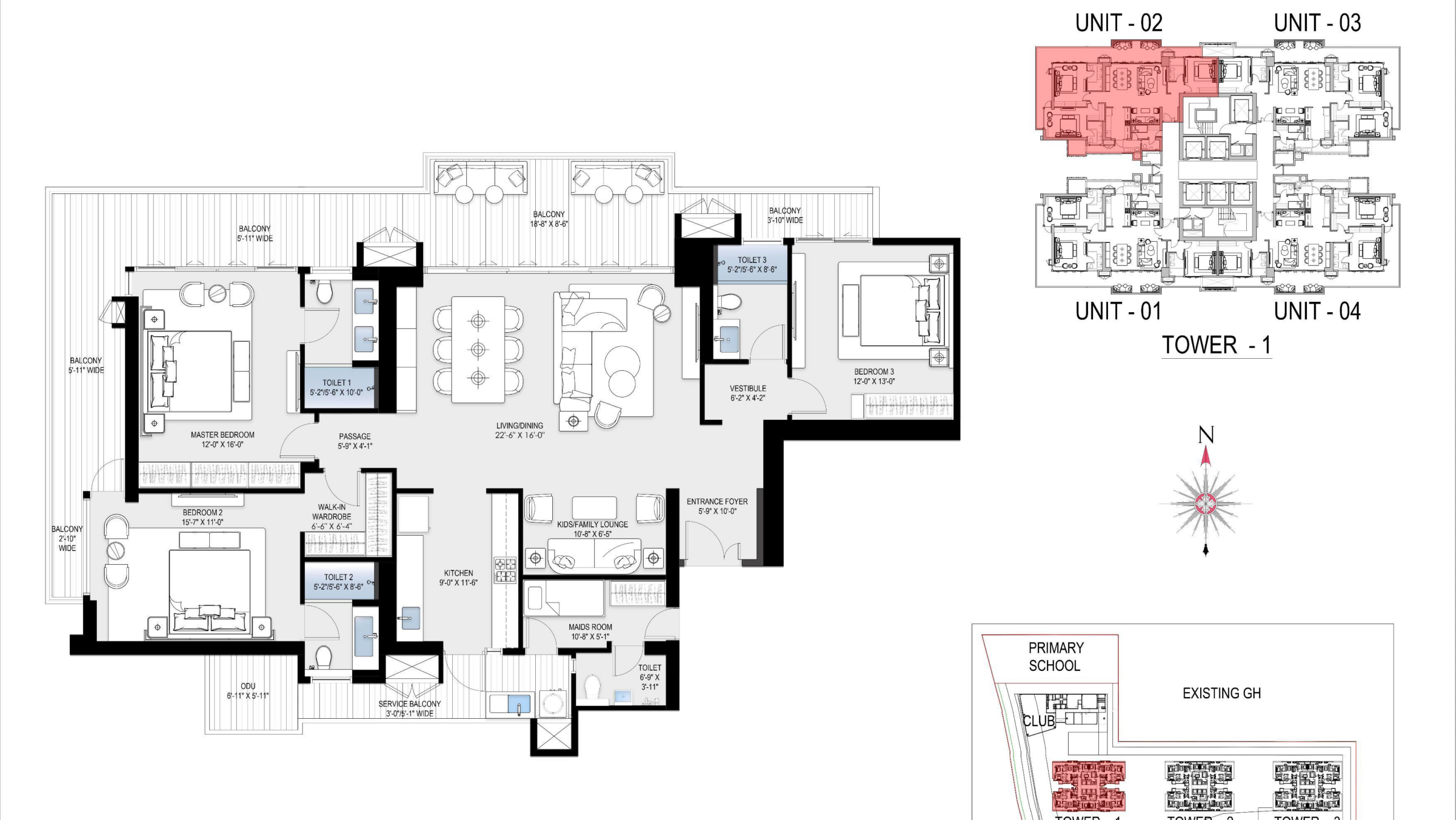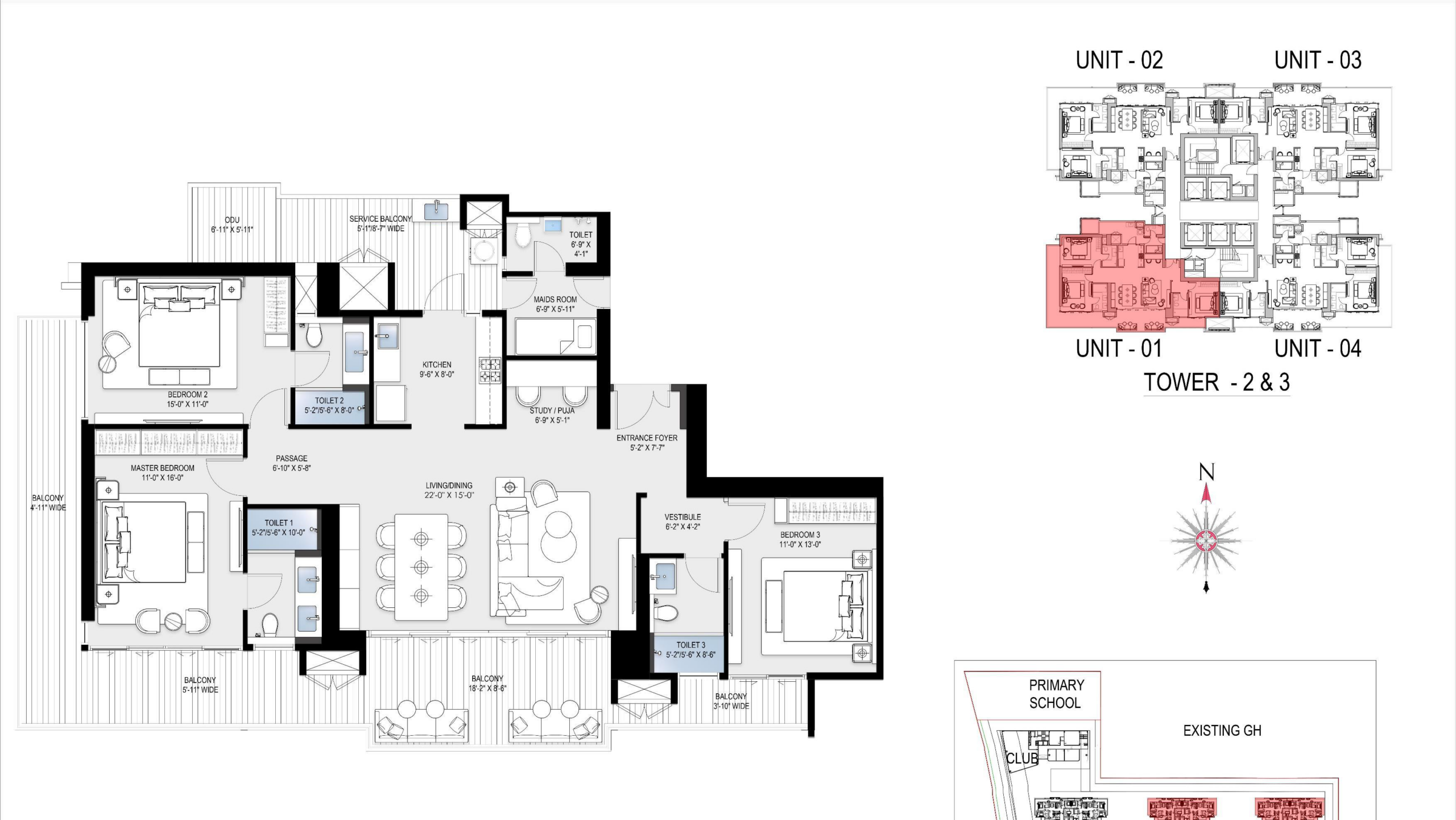 The property has 2, 3, and 4 BHK apartments that are between 2,500 and 2,900 square feet in size and have plenty of rooms.